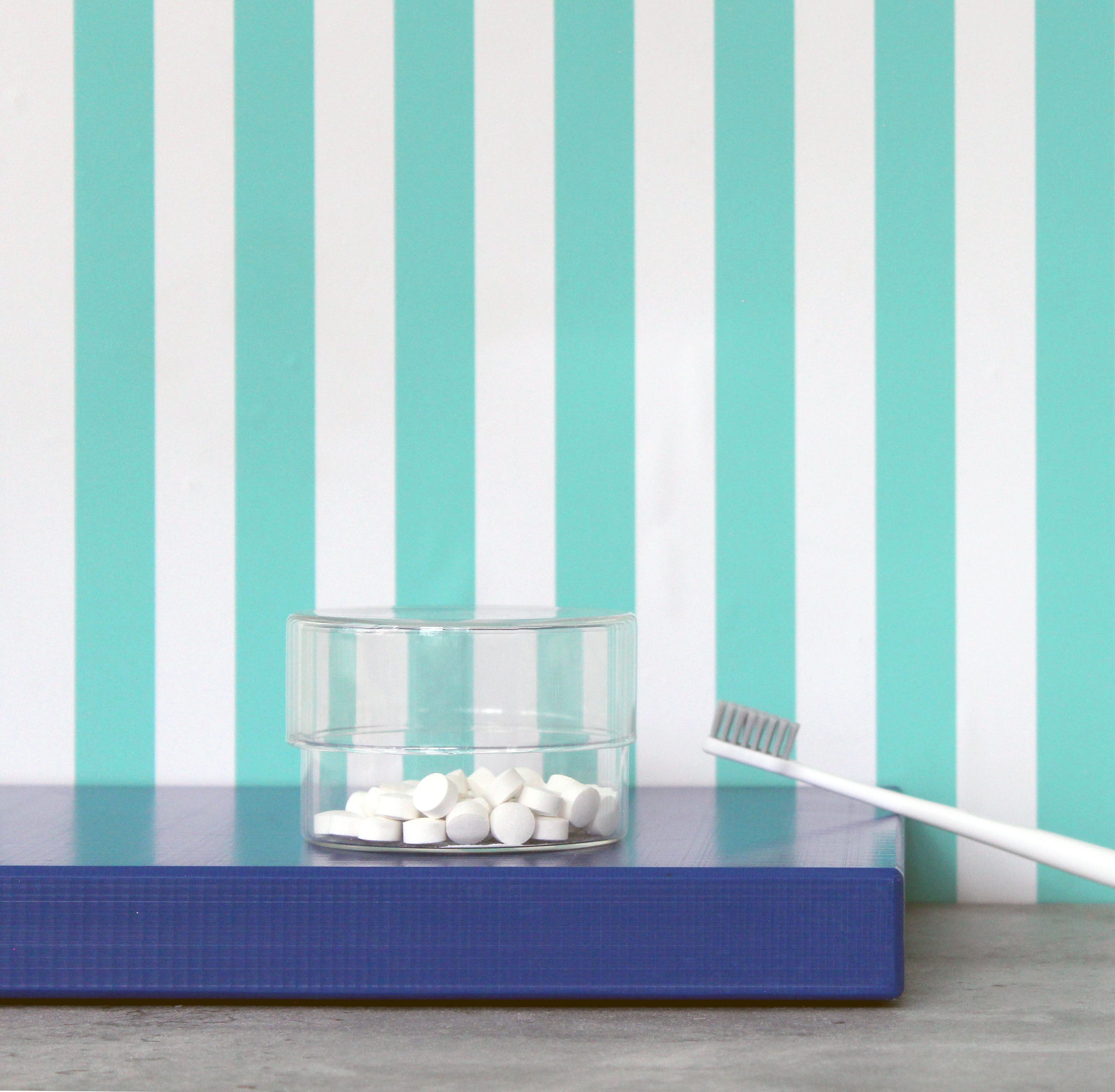 A small glass jar perfect for cotton rounds, toothpaste tablets, vitamins, jewelry and anything else you like to keep