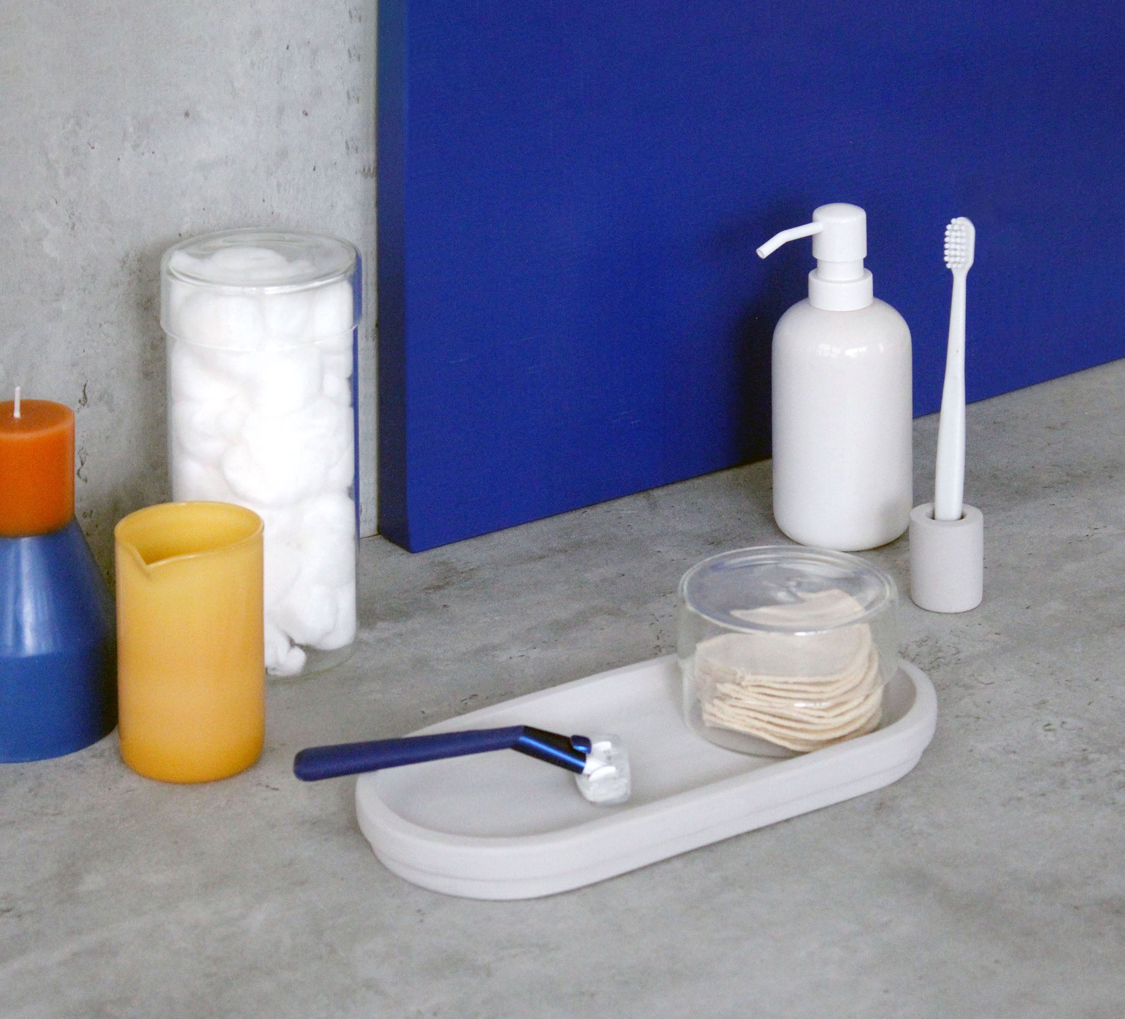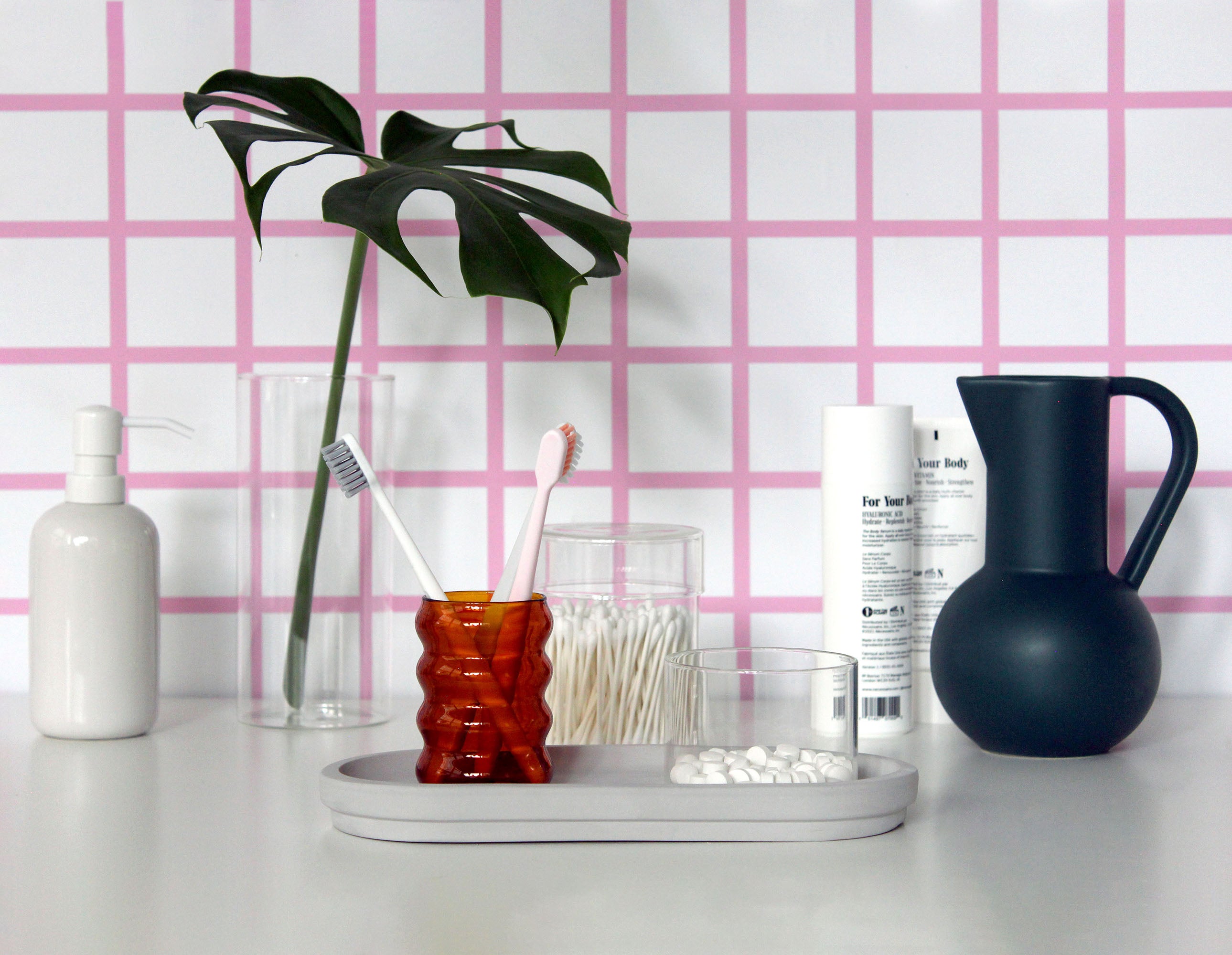 Fits neatly on the vanity tray and looks great alongside with the medium and large glass jars