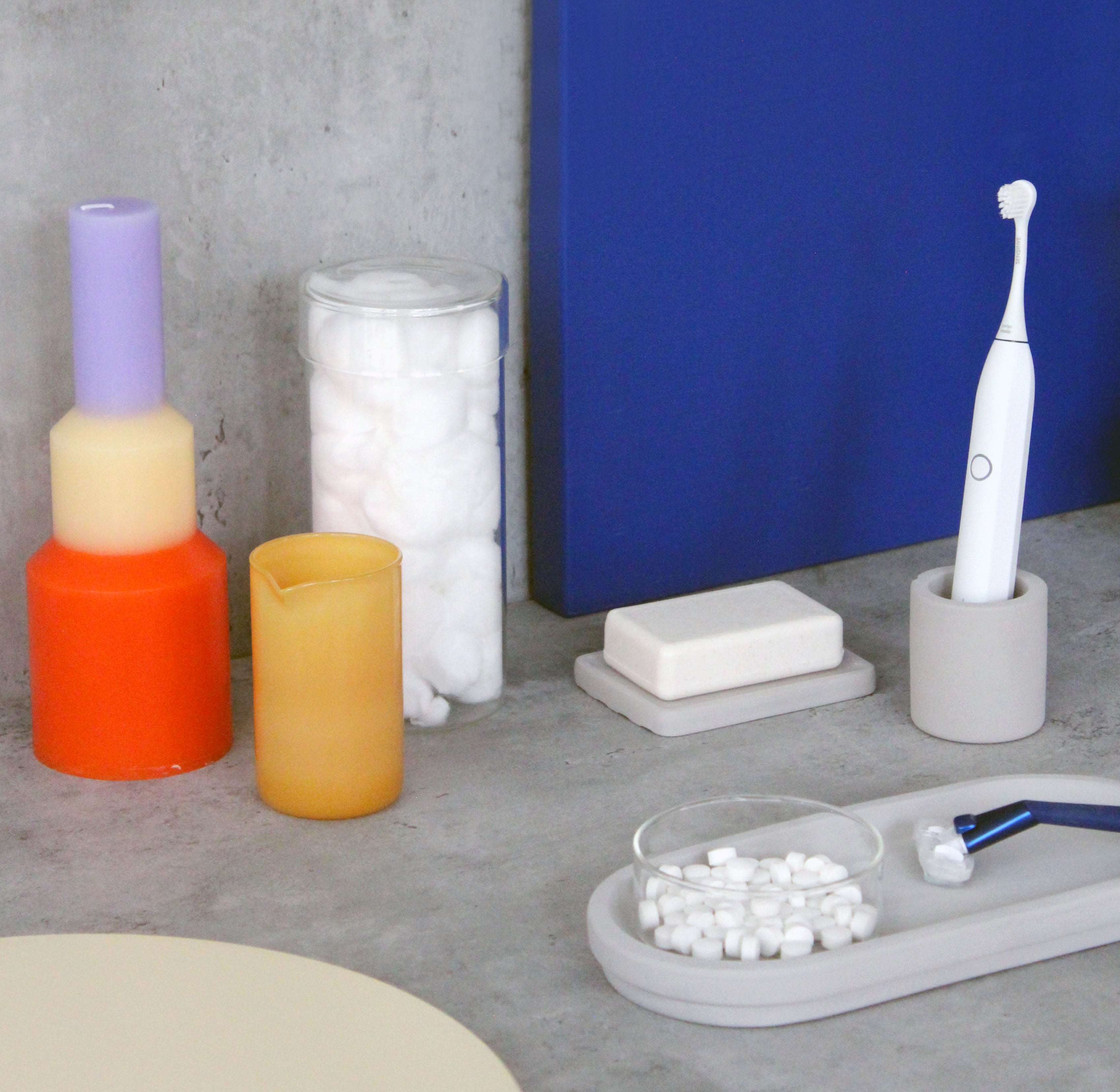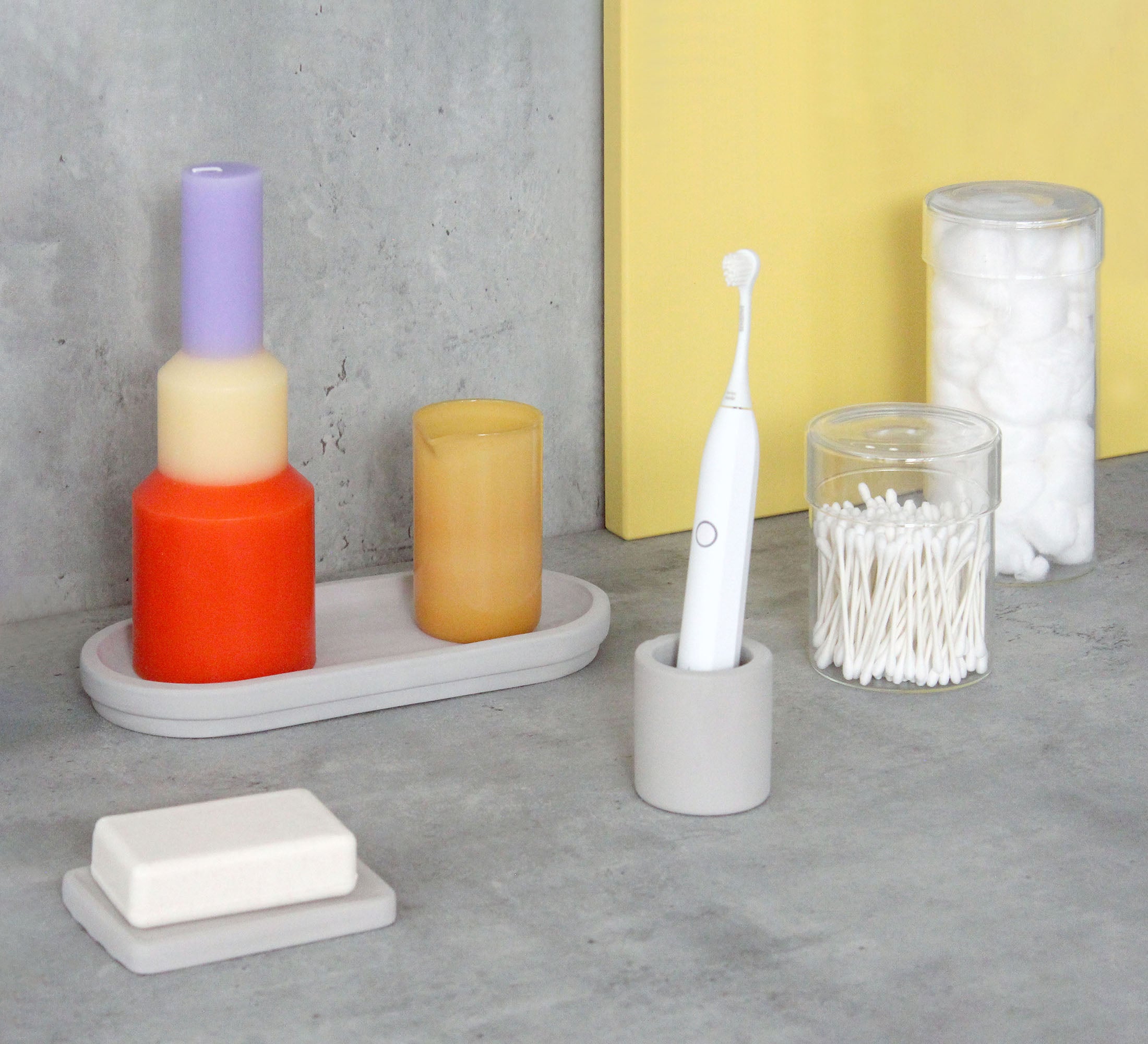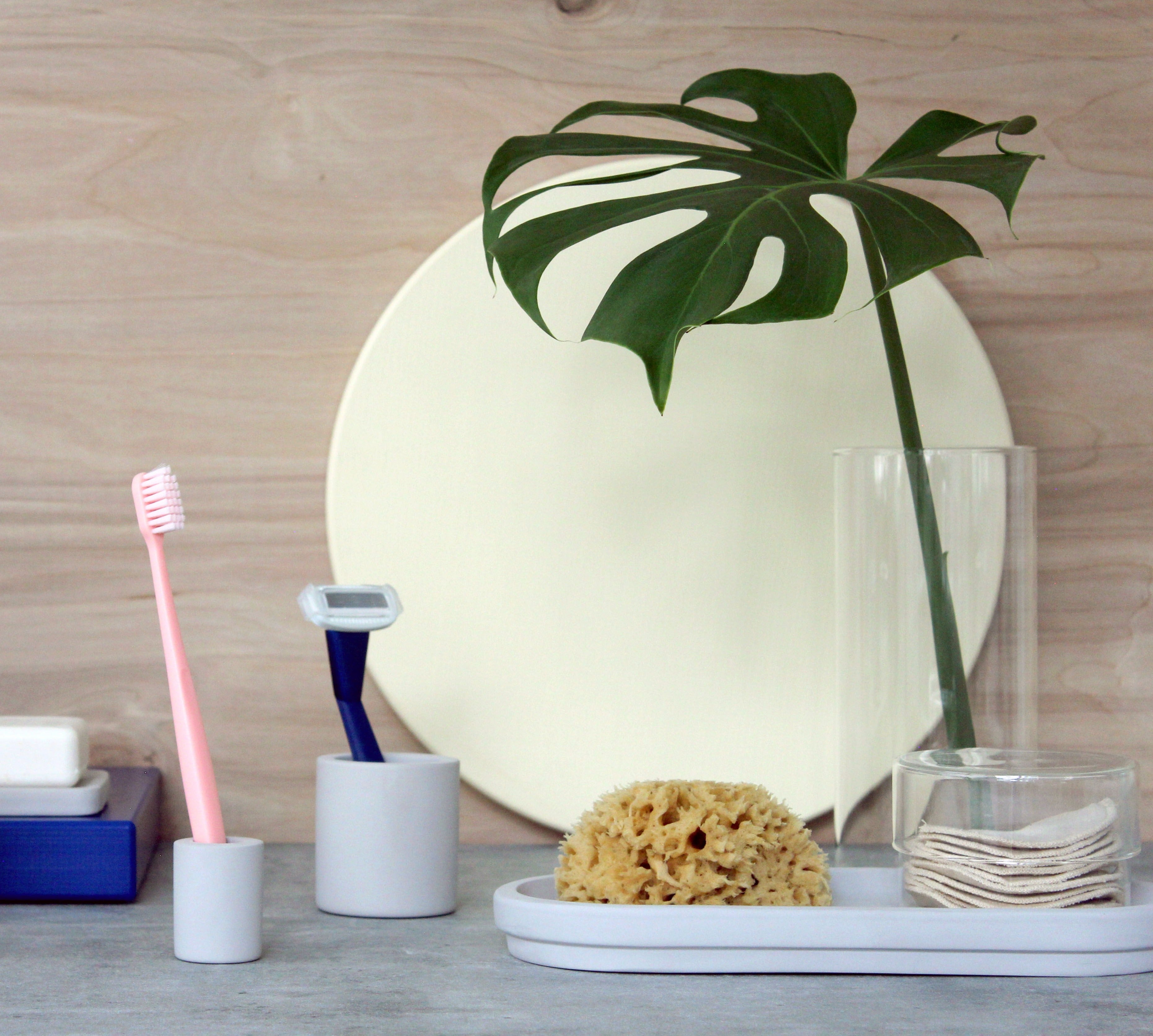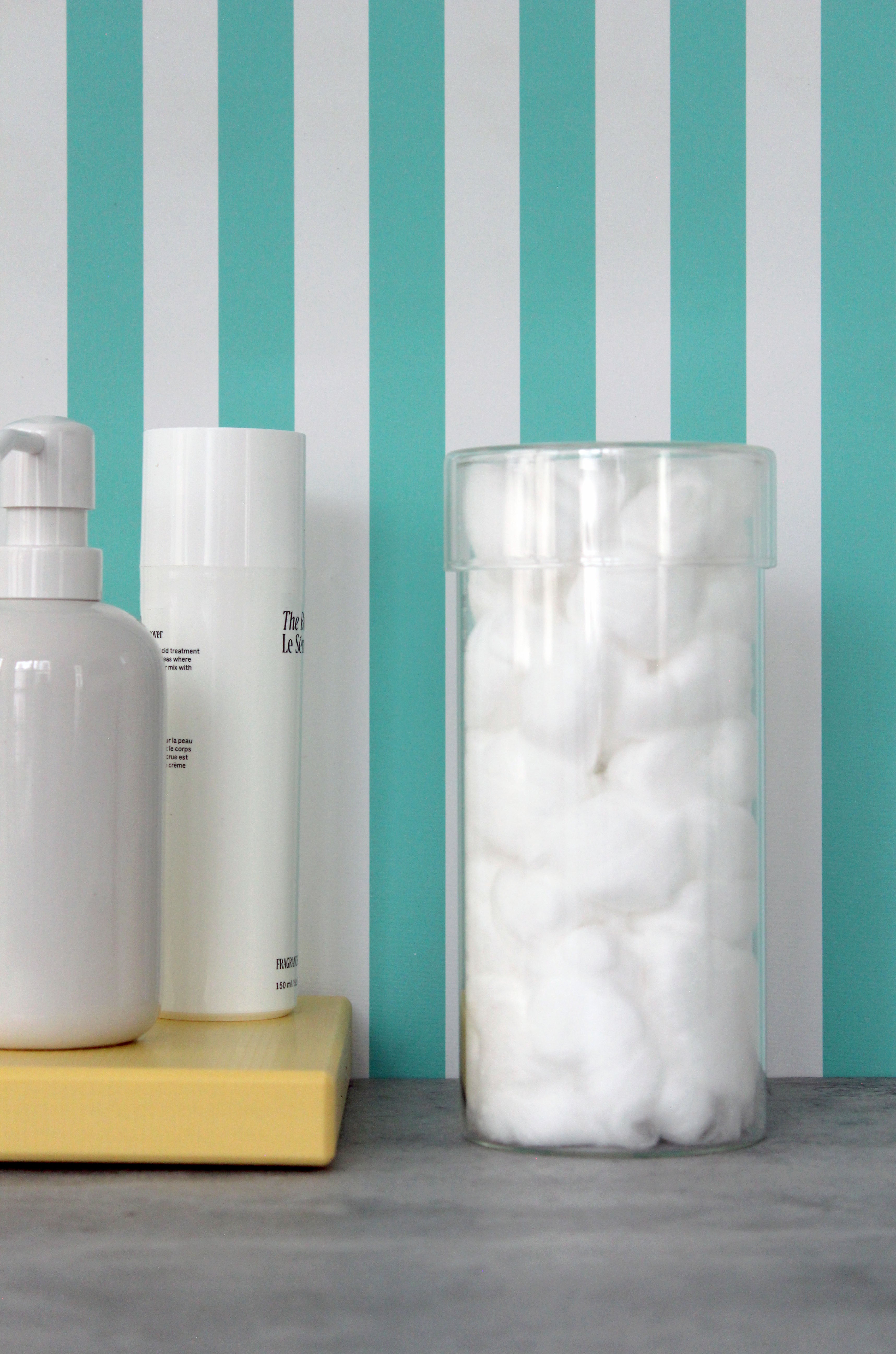 Fits neatly on the vanity tray and looks great alongside with the small and medium glass jars